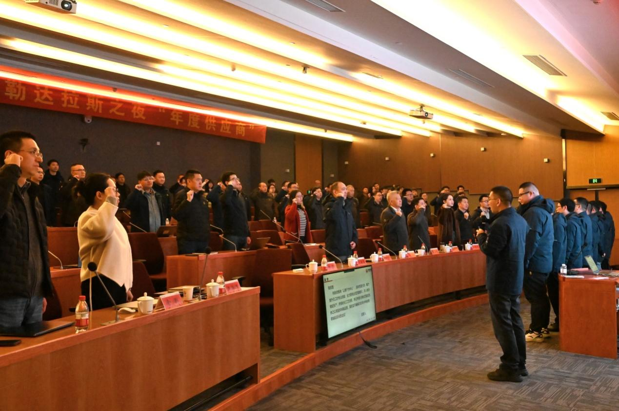 目标宣布后,现场及在线的银轮员工纷纷起身,进行了庄严的宣誓仪式,表达了对实现目标的坚定决心。随后,湖北美标总经理郭琨和墨西哥华富山工厂总经理范正统也分别表态,承诺将这一目标深植于来年的每一项行动计划之中,确保目标落地生根,开花结果!